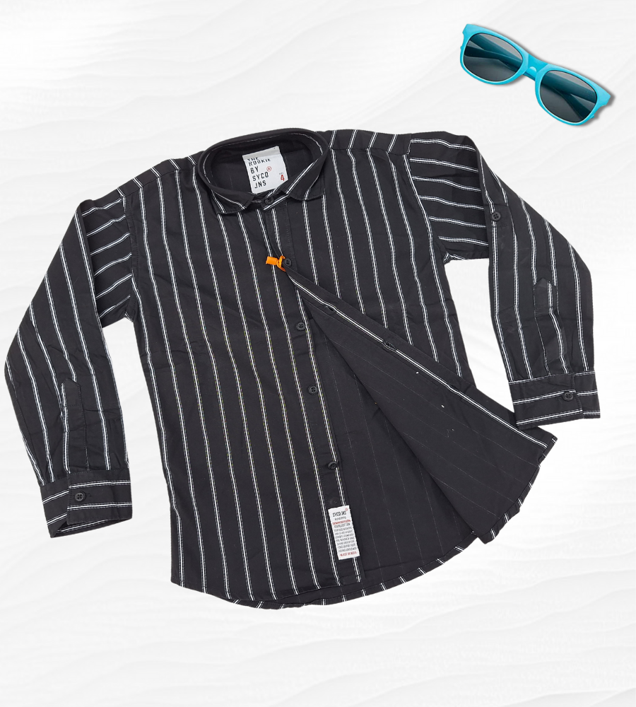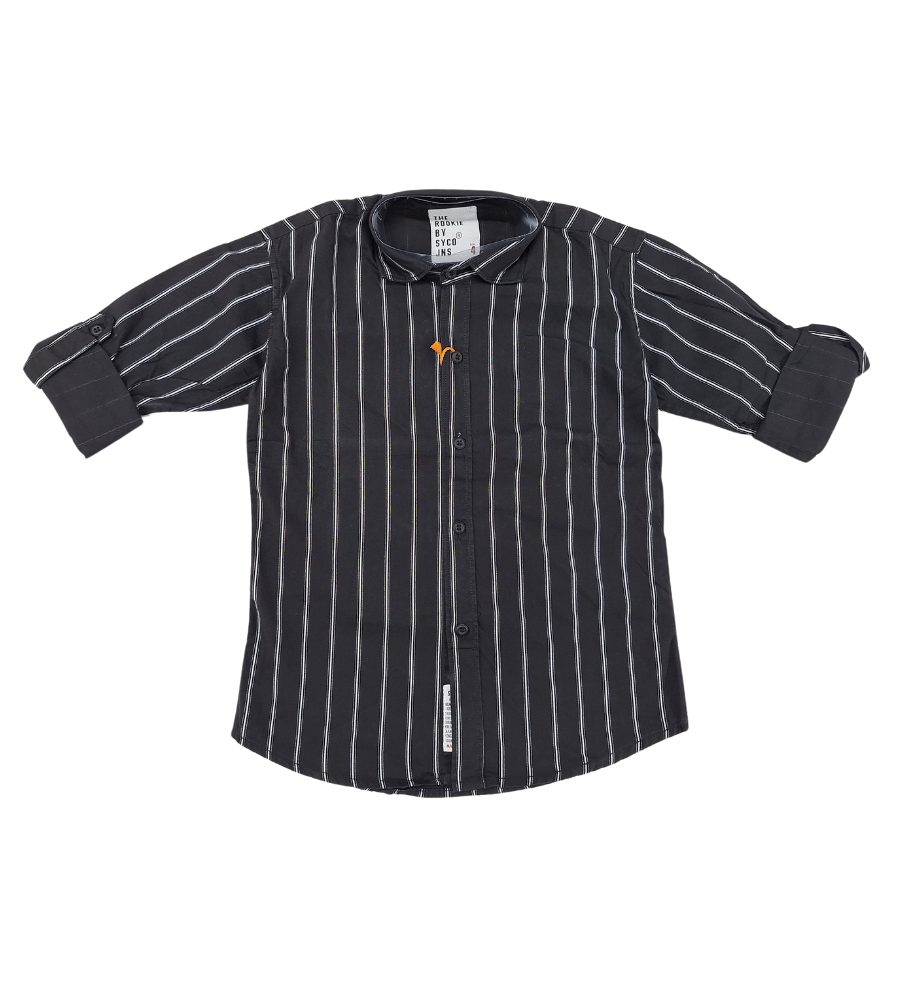 - Colour – Vertical Stripes Shirt in Shade of Black With Turn Up Sleeves Options
